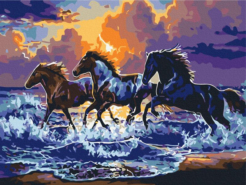 Картина за номерами 30х40 на дерев'яному підрамнику "табун чорних скакунів" rbs34306