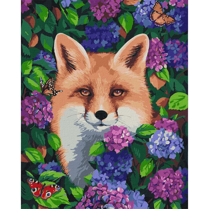 Картина за номерами "лис у гортензії" ідейка kho4349 40х50 см