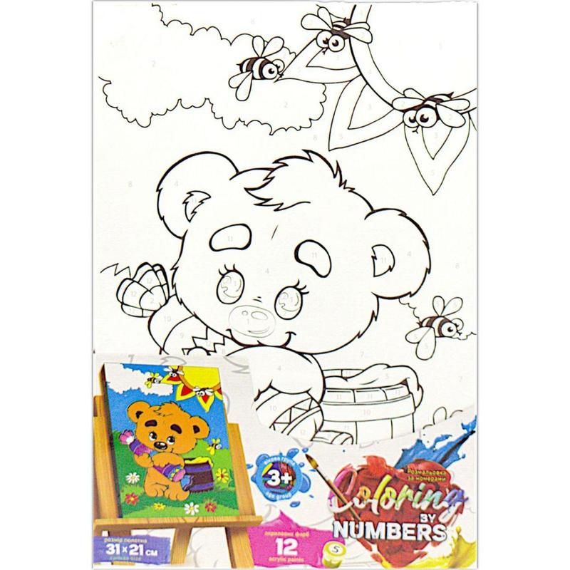 Розмальовка за номерами (21х31 см) ведмежатко