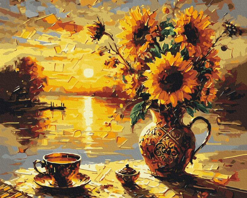 Картина за номерами 40х50 на дерев'яному підрамнику "соняшники на заході сонця © oleg lobu...