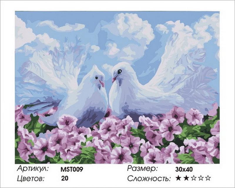 Набір для малювання за номерами 30х40 пара голубів mst009 з підрамником