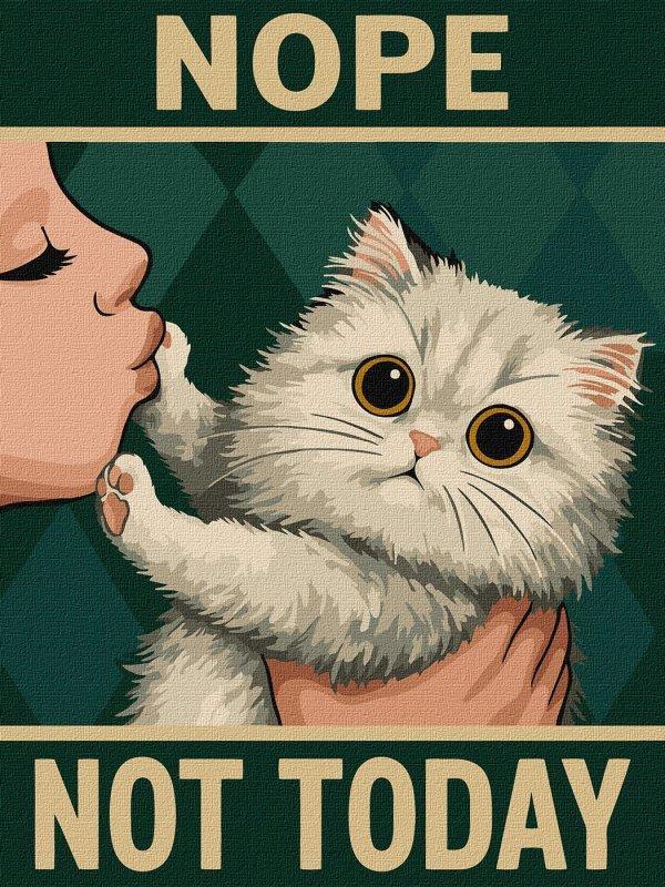 Картина по номерам "Постер. Не сегодня" 30x40см Набор для творчества с красивым сюжетом содержит: - натуральное полотно на подрамнике с галерейной натяжкой. На картине нанесена схема контуров изображения с нумерацией - 2 нейлоновые художественные кисточки - сочная палитра пронумерованных, акриловых красок в контейнерах - контрольное письмо и графическая схема - инструкция.