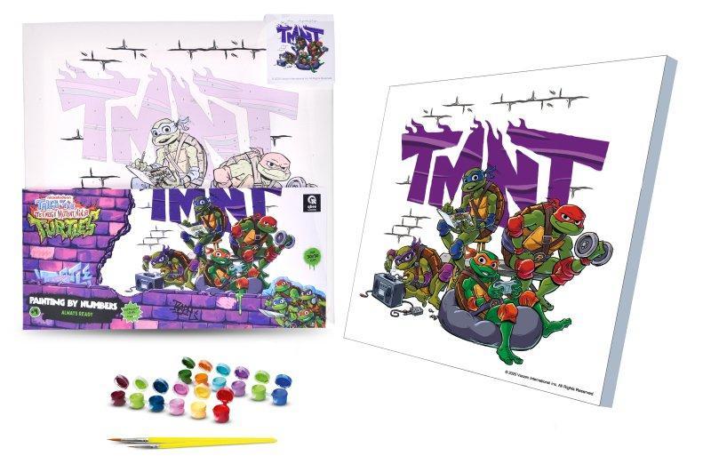 Картина за номерами 30х40 см "Черепашки Ніндзя: Завжди готові" з дерев'яною підставкою Для того щоб намалювати картину, необхідно малювати за пронумерованими контурами, що відповідають кольору фарби. У наборі: - полотно на підрамнику з галерейною натяжкою - художні нейлонові пензлі - палітра акрилових фарб у контейнерах - Дерев'яні деталі підставки для картини.