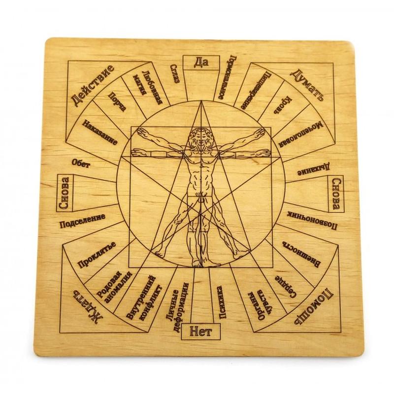 Таблиця для роботи з маятником "магічні дії" російською мовою 18*18*0,4 см.