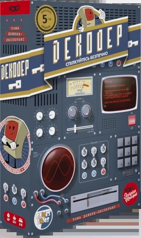 Нове видання має неймовірно стильне візуальне оформлення – чорний та золотий, нестаріюча шпигунська класика. І, звичайно, для шпигунів, які вивчили вже всі попередні паролі та явки у грі лежить ще без перебільшення величезний стос нових слів, а саме - 440. Ба більше, якщо у вас вже є попередня версія гри ви можете вільно змішати картки, додавши ще більше випадковостей у процес дешифровки. Усі учасники об’єднуються в 2 рівні команди та отримують спеціальний екран, листок для запису підказок, а також по 4 кодових слова. Їх якраз і потрібно вставити в екран, де будуть показані ключові слова. Цього опонентам знати не можна, тож тримайте все максимально у секреті. У кожному раунді серед обох сторін є шифрувальник. Він отримує код із трьох чисел, який потрібно передати своїм колегам. Відбувається це досить просто: шифрувальник пише на своєму листочку підказки у вигляді декількох слів. Як тільки один із капітанів підготує свої слова, автори рекомендують перевернути пісочний годинник. Тепер у протилежної команди залишилось не так багато часу! Наступний етап – шифрувальник білої команди зачитує підказки вголос (команди записують їх собі). Після цього чорна команда першою намагається вгадати код опонентів. Якщо вдасться це зробити – ви отримуєте жетон перехоплення. Два таких – і це перемога. Потім команда білих теж намагається зрозуміти код свого шифрувальника. Невдала спроба дає жетон перешкод, а два таких уже кажуть про вашу поразку. Після цього все повторюється і для протилежної команди. Розробники радять пропустити процес вгадування коду суперників у першому раунді. Кожен наступний раунд проходитиме за такою ж самою структурою, допоки одна зі сторін не переможе або не програє. Із кожним новим колом інформації ставатиме все більше, тож і вгадати коди суперників буде простіше. Ламаємо коди, професійно! Декодер – це вже не просто настілка, це ціле явище світового рівня! І якщо на ваших вечірках ви ще й досі не зіграли жодної партії у цю гру, то ювілейне видання Декодеру - це чудовий привід надолужити це!