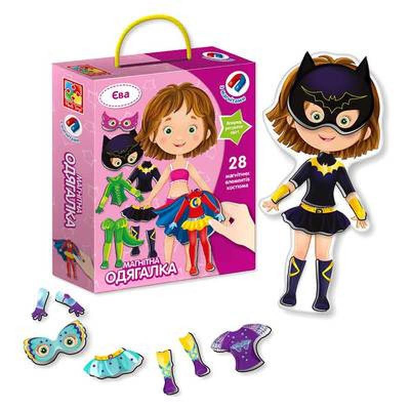 Ігровий дитячий набір магнітна одягачка "Ева" (укр) VT3702-08 із міцного та безпечного картону з магнітними вставками стане справжньою знахідкою для дітей віком від трьох років, які люблять головоломки. Якщо Ваш малюк готується до вступу до дитячого садка або школи, то як підготовка такі набори неодмінно їй знадобляться. Деталі дитячого пазла розроблені з міцного картону, натурального, екологічно чистого матеріалу, який не має хімічних запахів і абсолютно нешкідливий для дитячого здоров'я. Самостійно складаючи картинки, Ваш малюк навчатиметься уважності та посидючості, розвиватиме фантазії., дрібну моторику пальчиків, аналітичне й асоціативне мислення. Такі заняття чудово сприяють покращенню навичок запам'ятовування, тренують дрібну моторику пальчиків. Привабливе оформлення з барвистою гамою захоплює увагу малюка з першої хвилини, завдяки чому дитина буде із задоволенням проводити з грою вільний час.