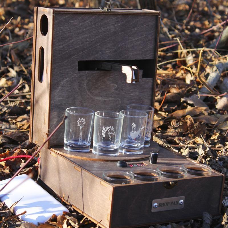 Наливатор алкогольний - відмінний подарунок для рідних, колег і шанувальників оригінальних презентів. Дозатор напоїв на 4 чарки розрахований на тісну компанію найкращих друзів. Налити порівну - тепер просто з автоматичним дозатором для напоїв. Зустрічайте гостей і насолоджуйтеся їх суспільством, а про точності подбає дозатор спиртного. Пристрій має ряд переваг: Індивідуальність. Гравірування додасть особливості; Функціональність. Дозатор напоїв може працювати в автоматичному і ручному режимі; Зручність. Працює від повербанка. В комплекті: наливатор, USB-кабель, харчової шланг, гравіювання і 4 чарки. У нашому магазині додатково можна замовити повербанк і гравіювання чарок. Товар виготовляється на замовлення