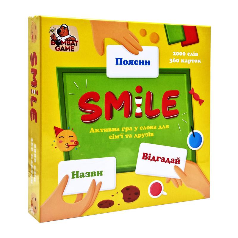 Цікава настільна гра Смайл (Українською мовою) 800187, розроблена з екологічно чистого, безпечного матеріалу, є справжньою знахідкою для любителів розвиваючих розваг. Ігровий набір, розрахований на компанію від 4-х до 16-ти чоловік, буде цікавий дітям старше 15-ти років, а також дорослим. Комплект, представлений російською мовою, включає в себе спеціальні 362 картки з 2000 слів для пояснення. Гра містить три види завдань, з підбором, поясненням слів, а також вгадування кіногероїв, включаючи серіал «Гра престолів». Забава відмінно підійде для веселої компанії, підніме всім настрій, посприяє розвитку логічного мислення, пам'яті, уважності і кмітливості. Набір доповнено 4 фішками для переміщення по ігровій платформі, 4 кольоровими пластиковими підставками і правилами для початківців.