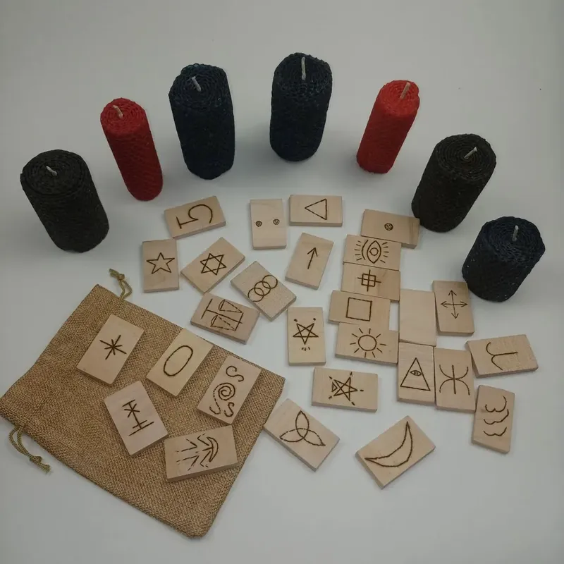 Набір дерев'яних рун для ворожіння відьомини руни в мішечку 28 рун+подарунок