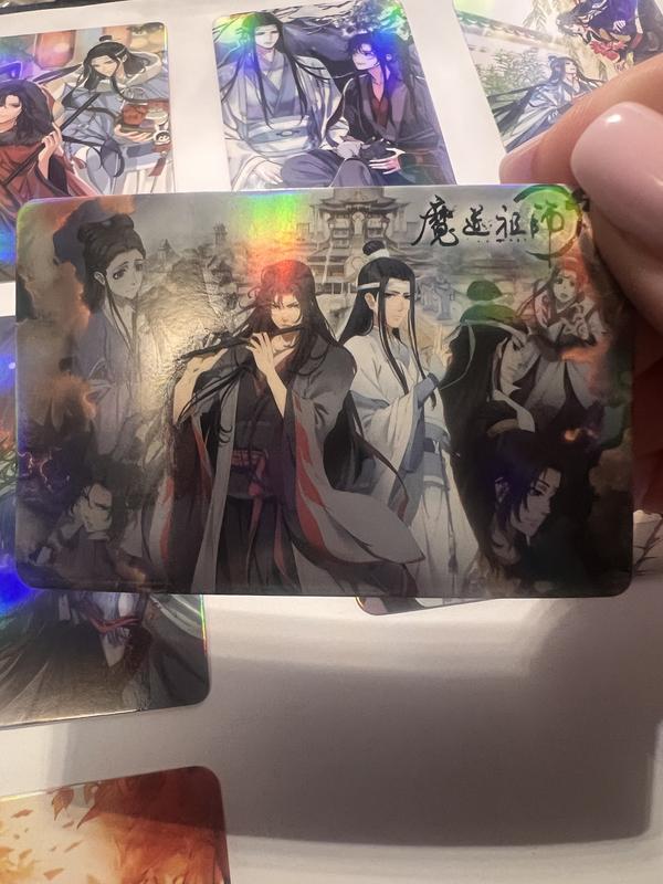 Картки Магістр диявольського культу \ Mo Dao Zu Shi з головними героями. Справжня радість для справжнього фаната. Стан: новий Кількість: 42 од Розмір 1 картки: 5,3 см х 8,4 см Ціна вказана за весь набір Якість: як голографічні, так й звичайні На останньому фото зображені "рубашки" карток - задня частина
