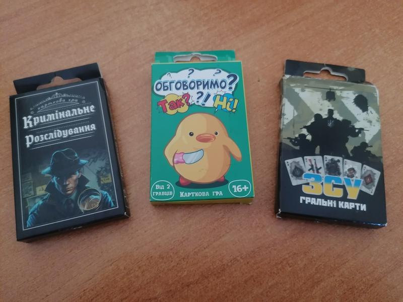 Ігри карткові: "Кримінальне розслідування", "Обговоримо: Так, ні?", гральні карти ЗСУ