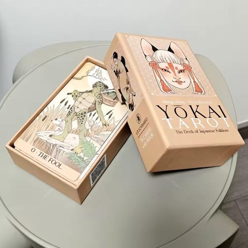 Розмір карт стандартний для Таро — 12х7 см. Колода нова! У плівці. У щільній картонній коробці 78 карт Карти текстурні на дотик (з текстурою льону) У коробці посилання на інструкцію англійською мовою Система — Уейт Згідно з японським фольклором, людство ділить Землю з сутностями, званими йокай. Кажуть, що вони мешкають у тіні лісів, під поверхнею моря або в найзагадковіших куточках наших будинків. Вони можуть мати людську, звірину або навіть об'єктоподібну зовнішність; Вони можуть бути бешкетними, але також мирними та захистливими. Одне можна сказати напевно: завдяки прекрасним ілюстраціям Маргі Б'яцці йокаї тут, щоб спрямовувати ваш шлях своєю віковою мудрістю.