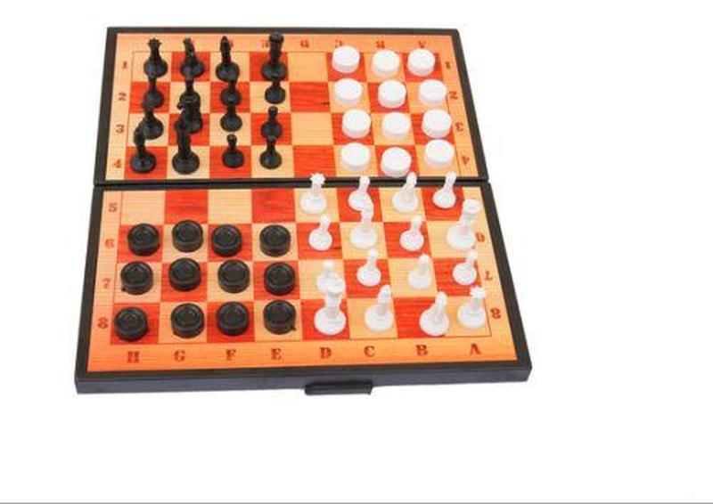 Набор 2 в 1, шашки + шахматы. Играя в эти игры, ребенок будет развивать логическое мышление, сообразительность, внимательность, усидчивость._ Бренд: Максимус Упаковка: Пакет Цвет: Разноцвет Вес в упаковке: 160 г Габариты в упаковке: 12 x 2.5 x 22 см Габариты без упаковки: 12 x 3 x 22 см Cтрана производитель: Украина Материал: Пластик Комплектация: Доска, шашки, шахматы