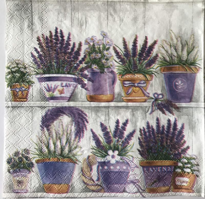 Серветка декупажна лаванда.квіти в горщиках. 3шари,33*33см тм jet