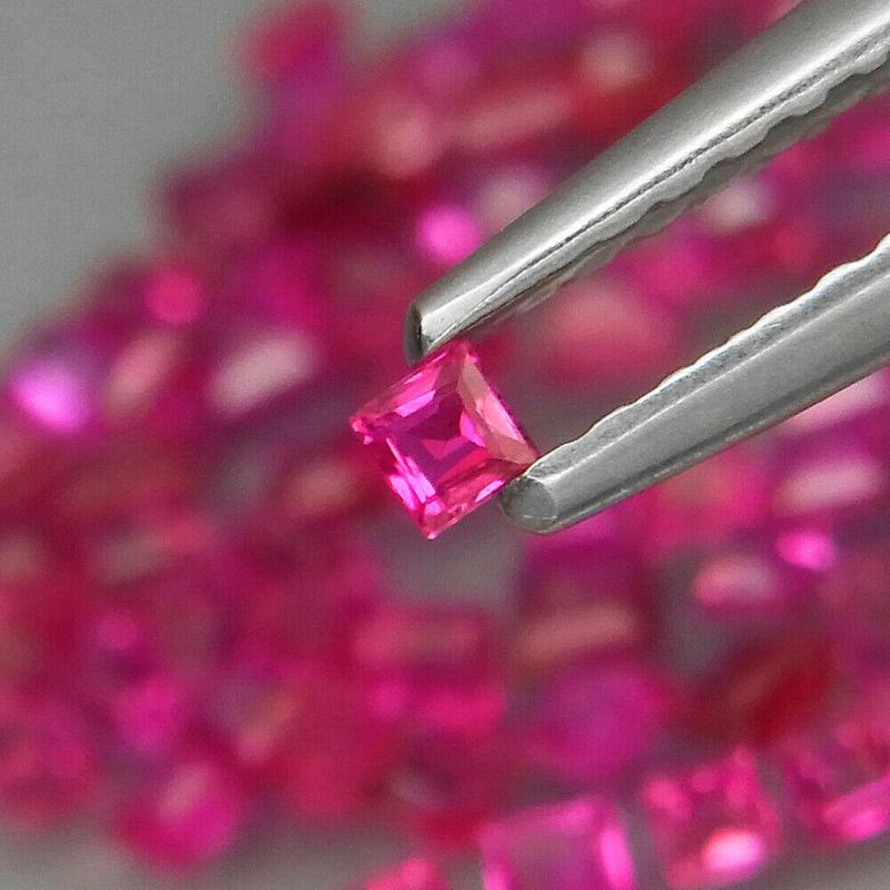 Рубін . Рубін відомий з глибокої давнини і використовується для вставок в ювелірні прикраси. Рубін — талісман людей, що займаються діяльністю, пов'язаною з ризиком для життя: воїнів, пожежників, міліціонерів, рятувальників. Потрібно пам'ятати, що в якості талісмана рубін допомагає людям з чистим серцем і помислами. Він надає їм мужність, підживлює енергією і оберігає від травм. Кільце з рубіном в якості амулета додасть господареві відчуття радості, підвищить життєві сили, поліпшить пам'ять, продовжить життя. Камінь вогняної стихії, палке і пристрасне кохання - рубін, камінь земної любові, кохання між чоловіком і жінкою. Енергія рубіна розпалює вогонь любові і підтримує її розбурхане полум'я. Камінь : Натуральний рубін Форма : принцеса Розмір : 1.5 - 2 мм Кількість : 1 Колір : рожевий червоний Ясність : VVS Походження: Thailand Твердість: 9 Блиск: винятковий Лікування : підігрів . без скла Сертифікат : немає