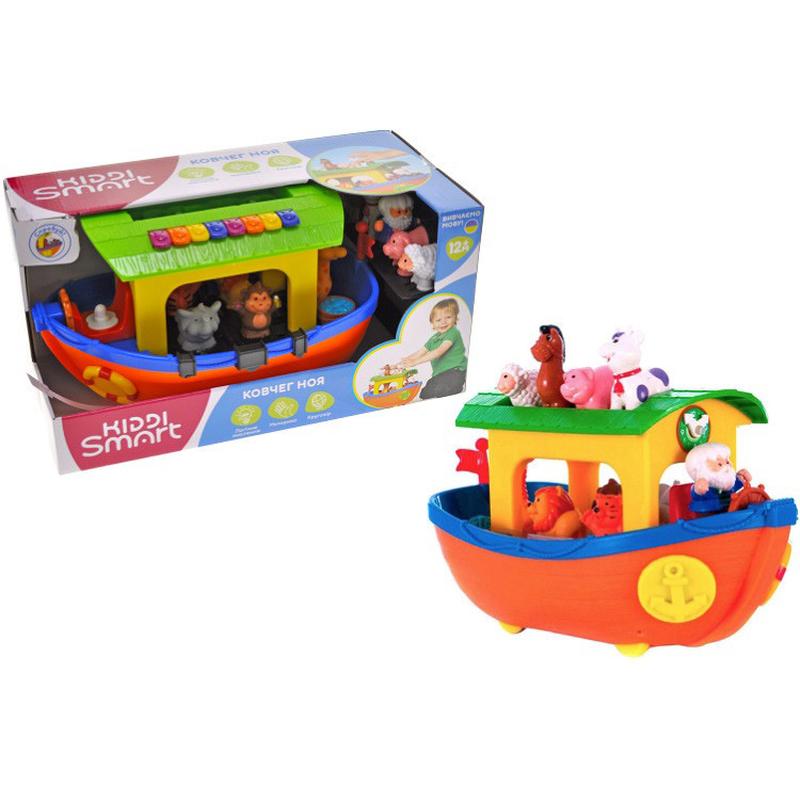 Игровой набор Ноев Ковчег озвученный на украинском языке признан самой любимой игрушкой украинских малышей! Расставь фигурки по местам и отправляйся в путь! Каждый персонаж этого замечательного Ковчега озвучен по-украински. Кроме фигурки Ноя в комплект входят фигурки животных, которые читают стишки на украинском языке и издают соответствующие реалистичные звуки. Стихи и песни познакомят ребенка с названиями и характеристиками животных, помогут лучше узнать окружающий мир и библейскую историю. Какие функции есть у Ковчега • при повороте штурвала раздается звон колокола и звук корабельного двигателя • при нажатии на бочонки звучат веселые песенки на украинском языке, а Ной поет песню о Ковчеге • на крыше кораблика размещено мини-пианино с разноцветными клавишами • у Ковчега есть колесики, поэтому его можно катать за собой на веревочке. Игровой набор Ноев Ковчег озвученный на украинском языке не только развлечет ребенка, но и поможет в развитии таких важных для малыша навыков: • речь • логика • кругозор • память • музыкальный слух • мелкая моторика. Упаковка презентационно-открытая. Питание: 2 батареи АА (входят в комплект). Размер: 32 * 20 * 18 см. Рекомендовано для детей в возрасте старше 12 месяцев.