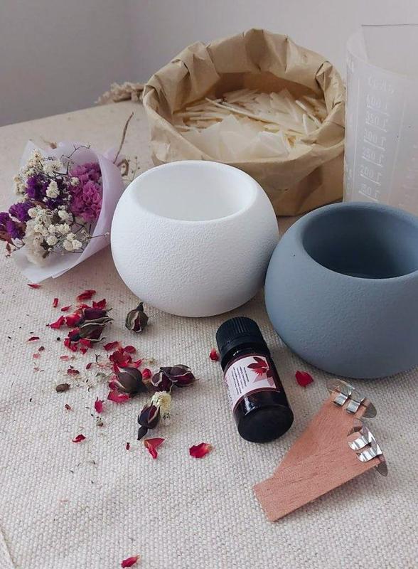 Набір для виготовлення свічок: Scandinavian style Склад набору: * соевий віск 230грамм; * 2 гіпсові форми білого і сірого кольору - висота 5,5 см, діаметр 8 см; * 2 гноти бавовняний і дерев'яний; * Аромати на ваш вибір: 1) аромат для свічок palo santo 1 мл; 2) аромат для свічок лісові ягоди 1 мл; 3) аромат для свічок шоколад 1 мл; 4) аромат для свічок ваніль 1 мл; * мірний стаканчик; * сухоцвіт для декору; * дерев'яні палочки; * наші секрети виготовлення свічок У тебе буде: 2 унікальні крафтові свічки захоплення від процесу свічковаріння відчуєшь творче натхнення і радість від результату живе полум'я свічки подарує казковий настрій та створить атмосферу свята, затишку і романтики.