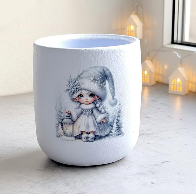 Кашпо для свічок "Зимова казка" 160 мл | Блакитне гіпсове кашпо ручної роботи з зимовим декором * * * ✨ Опис товару: Кашпо "Зимова казка" -- ніжна зимова історія у вашому інтер'єрі. Це стильне гіпсове кашпо ручної роботи, створене спеціально для заливки свічок або як елемент святкового декору. 🧊 Характеристики: - Висота: 8,5 см - Діаметр: 7 см - Об'єм: 160 мл - Матеріал: гіпс - Колір: блакитно-білий - Декор: зимовий сюжет із феєю та ліхтариком - Поверхня: з ніжною фактурою 🎁 Ідеально підходить для: - заливки соєвих або ароматичних свічок - створення святкових композицій - новорічного декору - оригінального подарунка ручної роботи Кашпо "Зимова казка" поєднує чарівність зими, затишок і ніжність. Воно стане особливою деталлю вашої колекції handmade виробів або чудовим доповненням до подарункового набору.