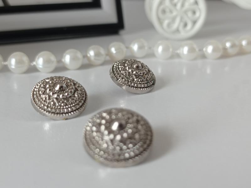 Винтажные пуговицы / набор 3 шт. Пластик, на ножке. Цвет серебристый. Диаметр 1 см. Цена за все.