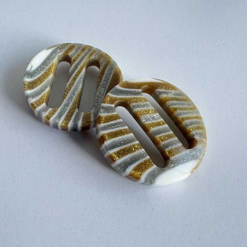 Пряжка кругла в смужку з глітером сіра 15 мм пластикова