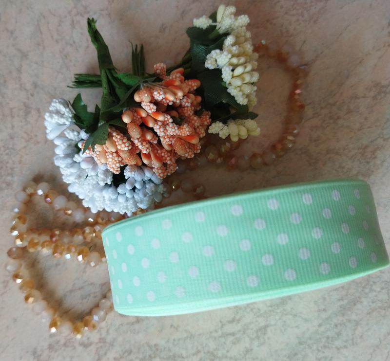 Репсова стрічка в горох №50 світло-салатовий шириною 2,5 см
