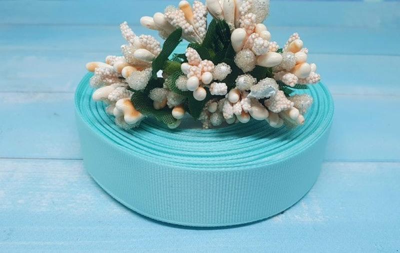 Репсова стрічка 2,5 см, колір блідо-бірюзовий, метр, бірюзовий