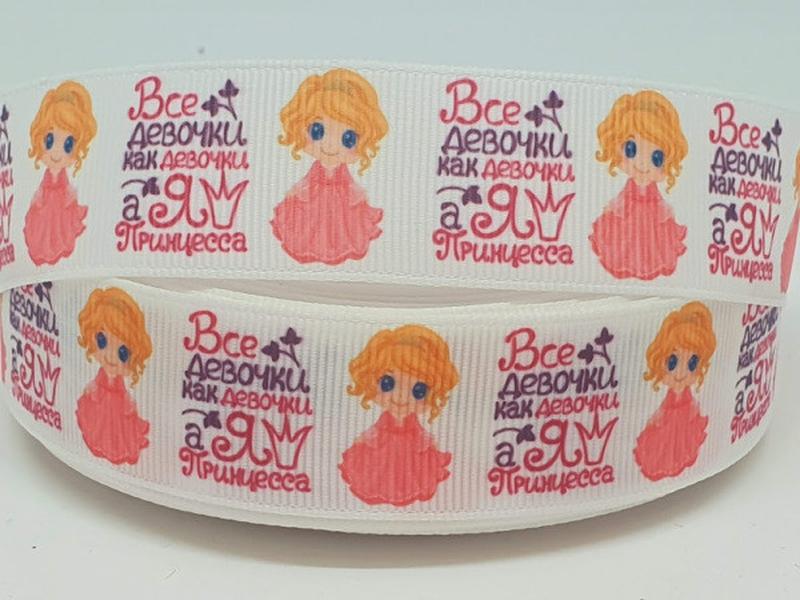 Репсова стрічка 2,5 см - всі дівчатка, як дівчинки, метр, різнокольоровий