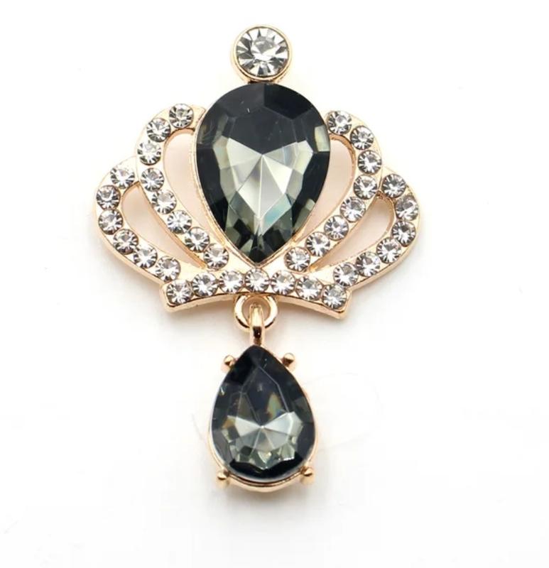 Стразовий декор корона з підвіскою в золотистій оправі сірий 2,4*3,8 см