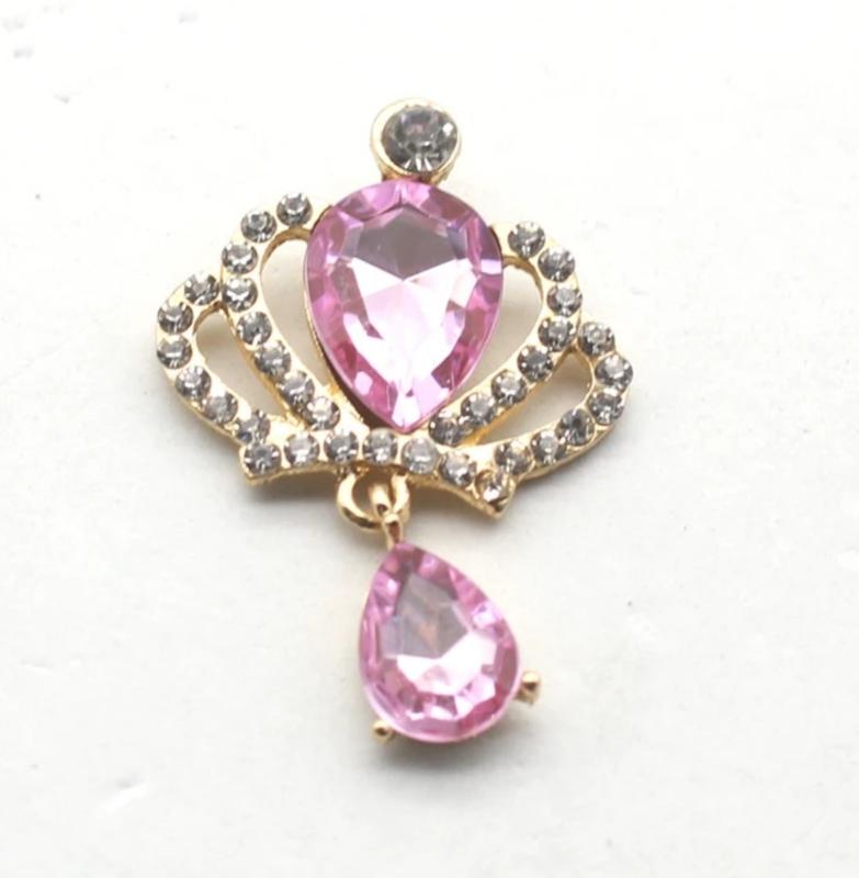 Стразовий декор корона з підвіскою в золотистій оправі світло-рожевий 3,1*4,6 см