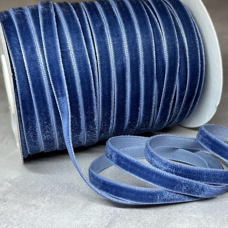 Лента велюр 0,6 см, темно-голубой, метр, темно-голубой