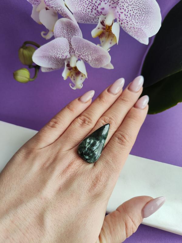 Кабошон серафініт крапля. кабошон з серафініту. серафинит. камінь серафініт.