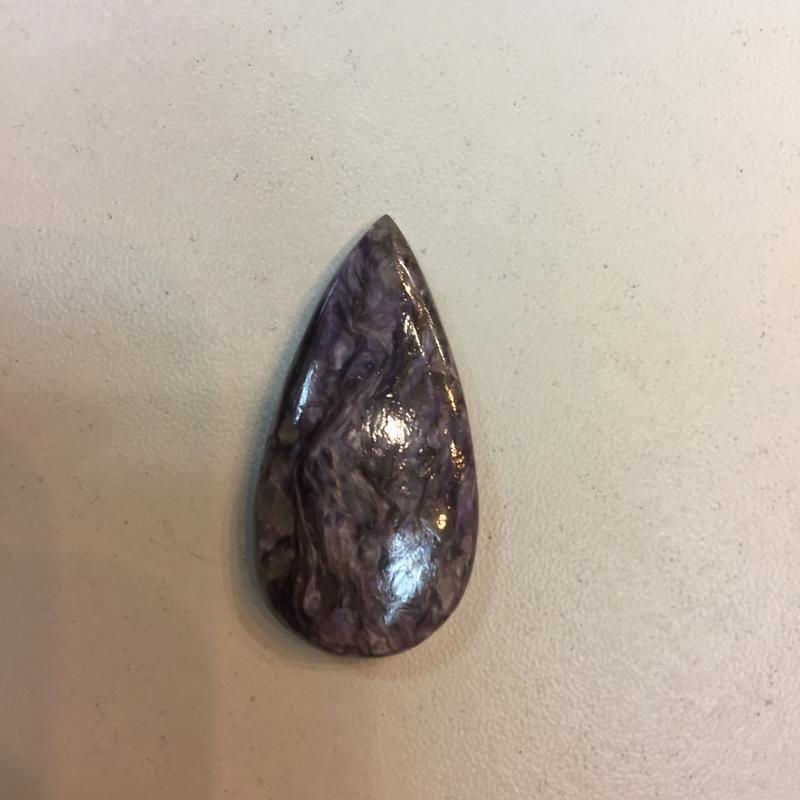 Пропонуємо Вам гарний кабошон, камінь - натуральний чароїт. Можна зробити красивий кулон, перстень або просто для краси. В наявності та під замовлення з Індії. Розмір : 41*21 мм.