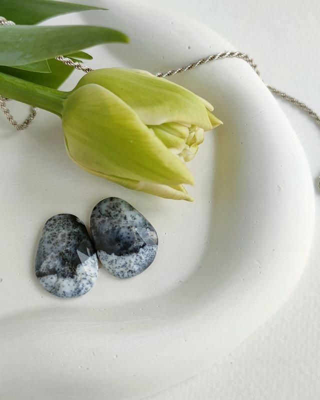 Дендро-опал кабошон. натуральний дендроопал кабошон пара . розмір 23,4*17,5*5 мм. індія.
