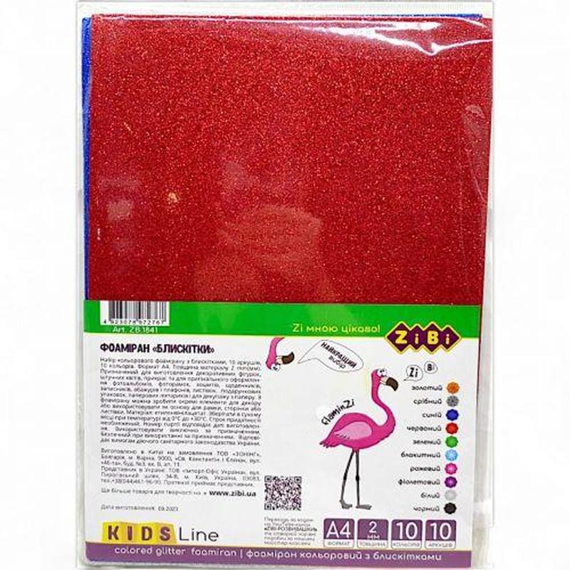 Фоаміран кольоровий, двосторонній з блискітками, а4, (10 аркушів / 10 кольорів товщиною 2...