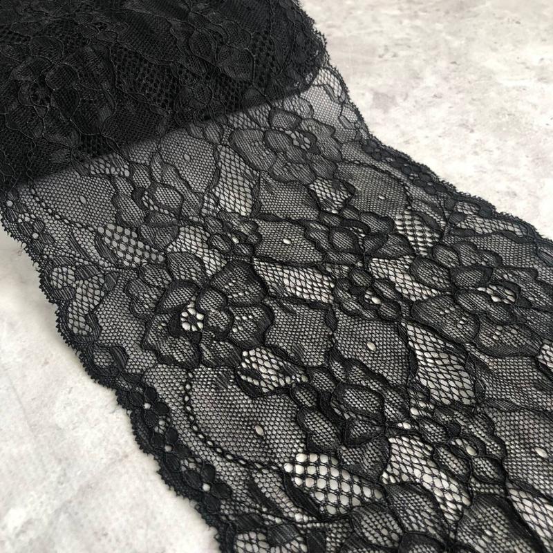 (1 метр) мереживо гіпюр стрейч 18 см - чорне (хн005)