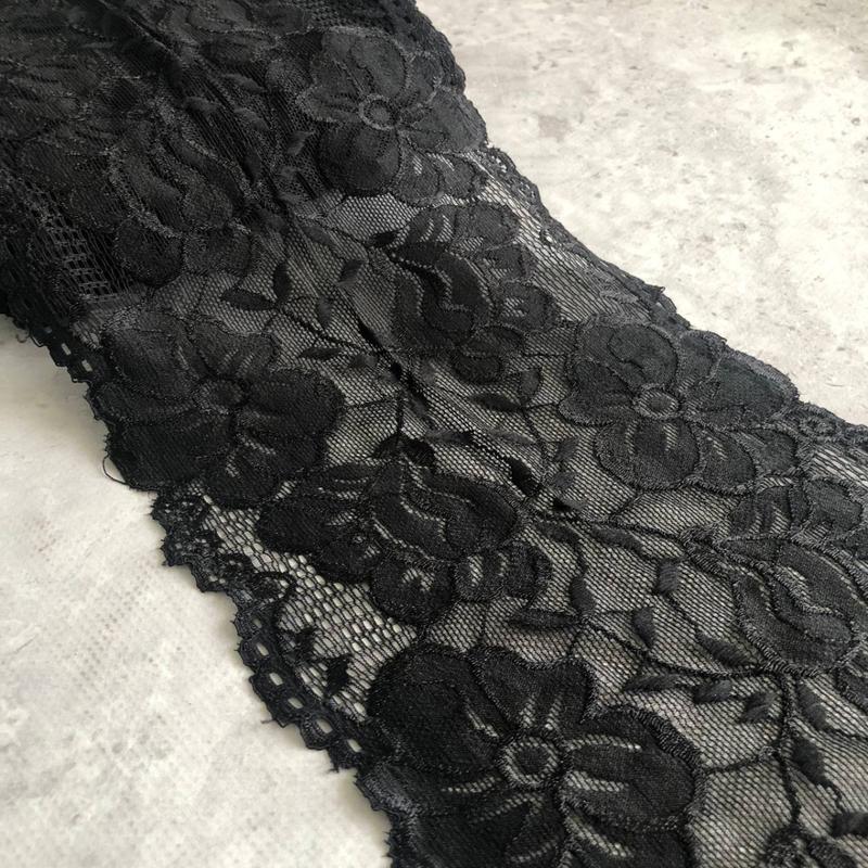 (1 метр) кружево гипюр стрейч 16 см - черное (d006)