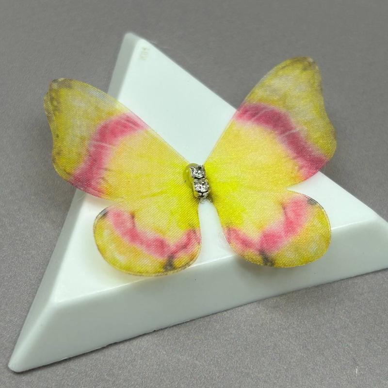 Шифоновий метелик двошаровий зі стразиком 3,5 см - жовта з рожевим