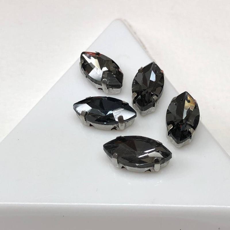 5 шт - стрази в цапах 6х12 мм (скло) човен, графітовий