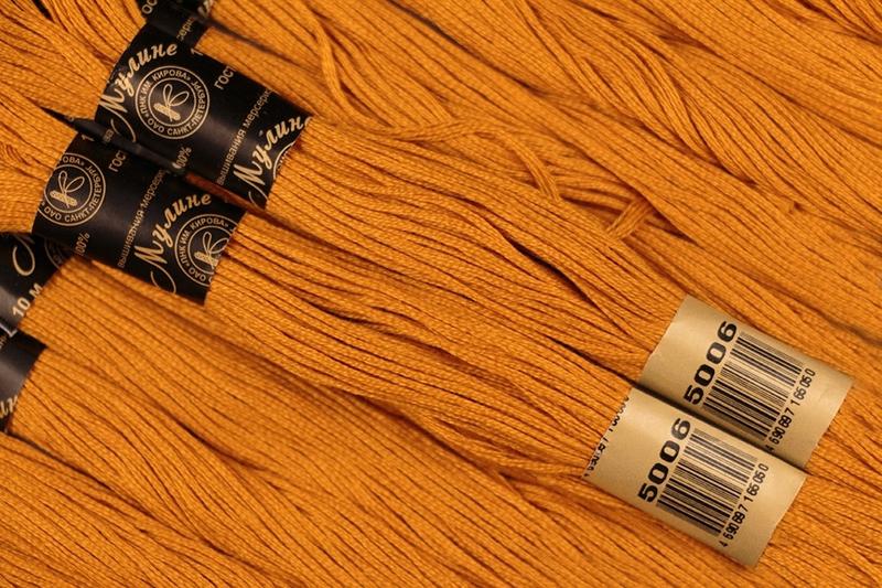 Колір 5006 гірчичний Муліне виготовлені з високоякісного узбецького довговолокнистого бавовни, що гарантує м'якість і надійність у роботі. Мерсеризація обумовлює їхній блиск, а технологія фарбування гарантує світлостійкість, нитки не линяють при температурі до 60°С. Нитки для вишивання муліне в мотку 20 метрів, 100% мерсеризована бавовна, нитка має 12 складань. Мерсеризована обробка забезпечує блиск нитки, а спеціальна технологія забарвлення - світлостійкість.