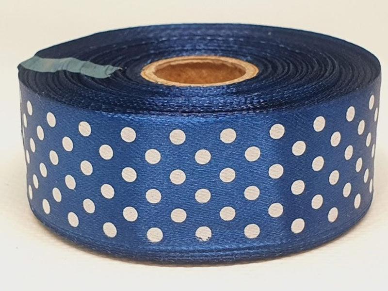 Атласна стрічка 2,5 см у горох, колір темно-синій, метр, темно-синій