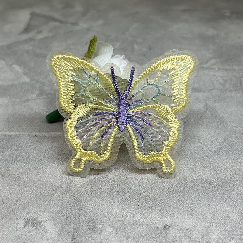 Метелик вишитий-сітка, (патч метелик), розмір ~4,5 см, колір жовтий, поштучно, жовтий