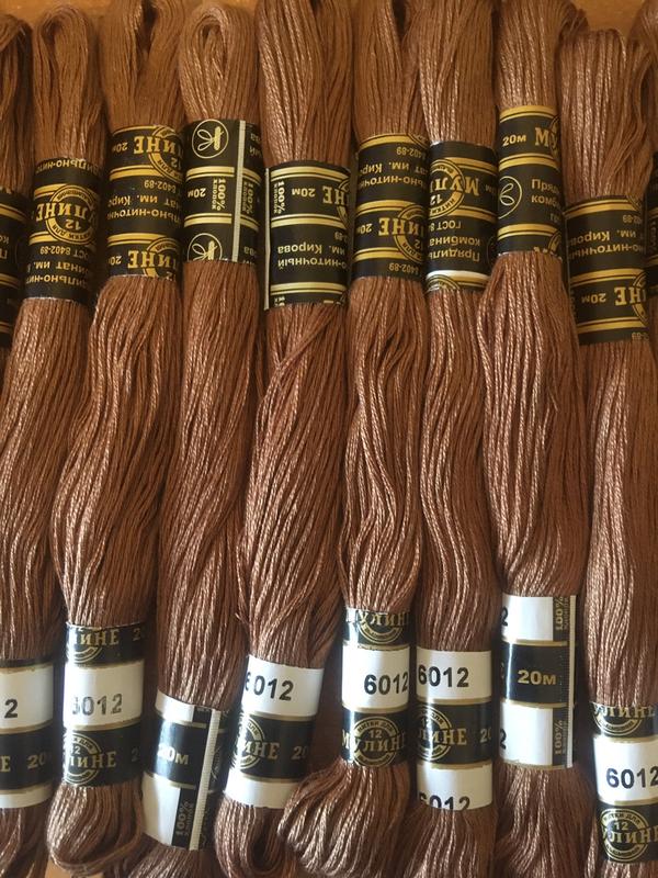 Колір 6012 коричневий Муліне виготовлені з високоякісного узбецького довговолокнистого бавовни, що гарантує м'якість і надійність у роботі. Мерсеризація обумовлює їхній блиск, а технологія фарбування гарантує світлостійкість, нитки не линяють при температурі до 60°С. Нитки для вишивання муліне в мотку 20 метрів, 100% мерсеризована бавовна, нитка має 12 складань. Мерсеризована обробка забезпечує блиск нитки, а спеціальна технологія забарвлення - світлостійкість.