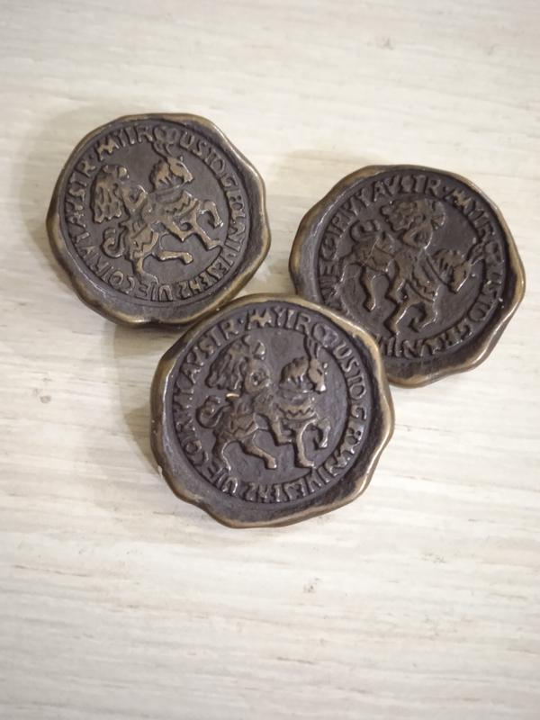 Ґудзики вінтажні в стилі старих монет, металеві важкі, діаметр 2 см. Набір 3 шт.