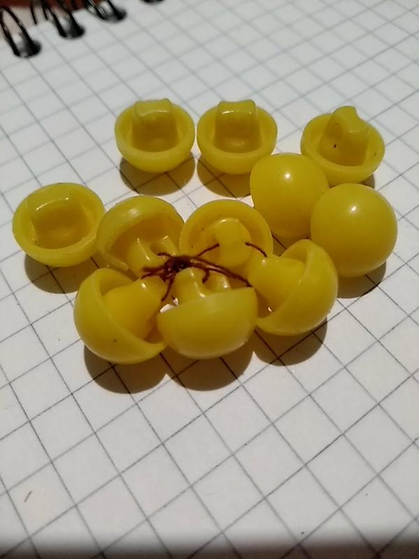 11 штук небольших пуговиц жёлтого цвета, на ножке.