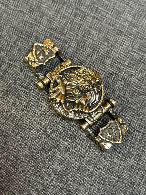 Ця крупна кругла застібка у вигляді лева є символом сили, відваги і королівської величі. Лев, як цар звірів, уособлює могутність і впевненість, і ця застібка відображає ці якості. Виготовлена вручну з латуні, вона привертає увагу і надає вашим виробам особливого характеру та величі. Застібка відрізняється високою якістю і довговічністю завдяки міцному матеріалу та майстерному литтю. Кожен елемент виготовлений з великою увагою до деталей, що надає виробу унікальності. Опис крупної круглої застібки Лев: - Матеріал: латунь - Виготовлена вручну, забезпечує високу якість і довговічність. - Розмір: 80 мм * 33 мм * 14 мм