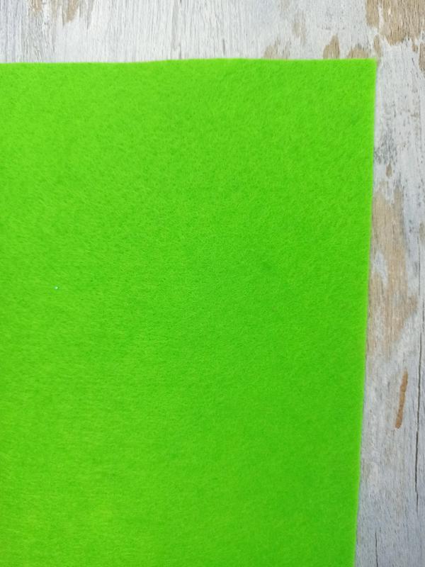 Матеріал: Фетр Розмір: 20 см х 30 см Толщина: 1.3 мм Плотность: 180 г/м2 Колір: Кислотно-салатовий