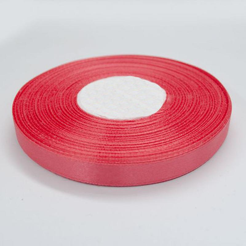 Лента атласная 12 мм светло-алая 23 м / атласная лента