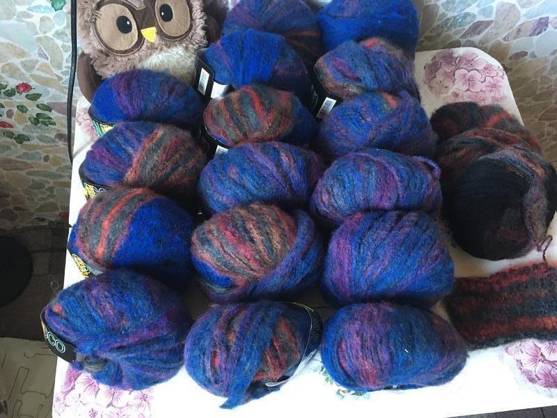 пряжа полушерстяная. новая цена за все 1 моток-50г-90 метров всего 16 штук. и плюс остаток 80 г другого цвета-связан образец. мягкая.нежная.теплая. вяжется легко-образец на 5мм