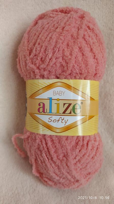 Пряжа Алізе Софті бебі, для в'язання гачком і спицями, для дітей. Склад — 100% мікрополіестер, довжина — 115 м. Колір рожевий персик.