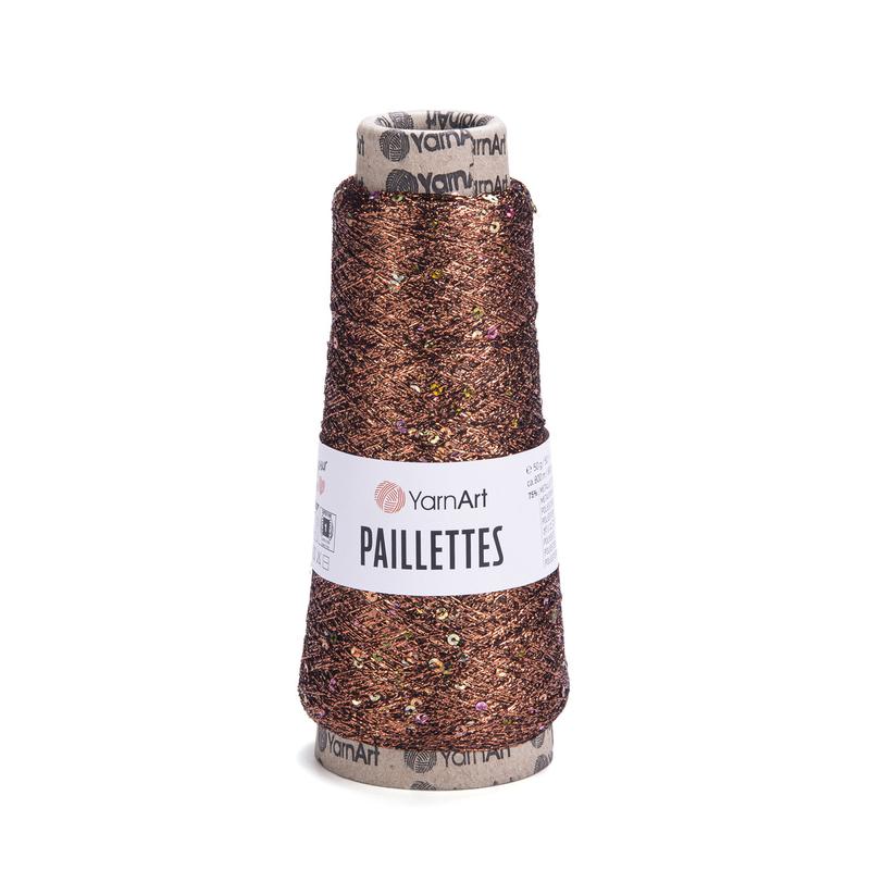 YarnArt Paillettes - Склад: 75% поліестер металік, 25% паєтки - Вага мотка: 50 грам - Довжина мотка: 800 метрів. - Упаковка: 1моток. - Спиці: 2,5 мм. - Гачок: 3,0 мм.